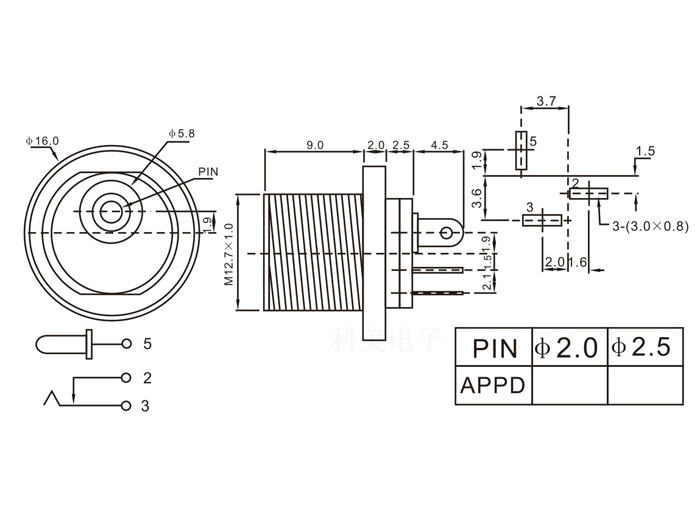 2.5Phone jack(DIP)